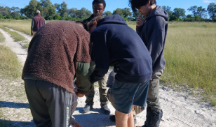Huffy, our guide during these two weeks, demonstrated a profound understanding of the Delta, worked well with our students, and showed them the true meaning of off-road driving as we bulldozed our way through islands in search of cats and dogs. Notably, we had a fantastic last day during which Huffy and another guide put the students in Makoros on the edge of the Khudum River.